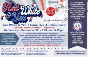 Online bidding opened on Friday, November 27 with a LIVE ONLINE auction on Wednesday, December 9, 2020: 6:30 pm- 8:00 pm. Featuring “Santa’s Chief Elf – John Loud” as emcee of this “unique and fun” statewide live auction event with net proceeds to benefit the Georgia National Guard Foundation. Presenting partners include Cobb EMC, Coca-Cola United and Lockheed Martin!