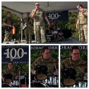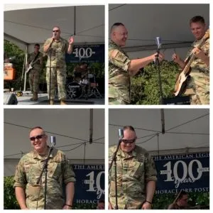 Horace Orr American Legion Post 29 in Marietta, GA hosted a weekend of activities to celebrate their 100 years as a Post as well as the American Legion as an organization. Post Commander Walt Cusick, Vice Commander Tom Bell and the members and supporters of the Post organized a family friendly event on Saturday the 28th that included a 5 piece component from the 116th Army Band! Despite the heat of the day, SSG Smokey Rowell led the “rock country” group, together with SSG Christopher Jessee, SGT Christopher Libby, SGT Eric Vogel and SGT Brittny Kempher! They played a wide variety of music from the 50’s to current songs, patriotic requests and more for an outstanding performance.