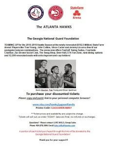 A portion of the proceeds from each ticket purchased through our link will be donated to the GA National Guard Foundation! Thanks to all for your interest and support! GO HAWKS!
