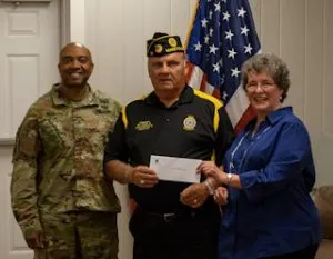 Commander Walt Cusick presents donation to BG Reg Neal and Harriet Morgan, GA National Guard Foundation