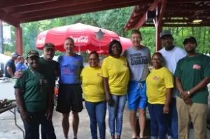 Prior to the flume race competition, the “It’s All About the Sauce” Chicken Cook-Off between the City of Marietta Police, City of Marietta Fire, Cobb 911, Cobb Sheriff’s Office, and two teams from the Georgia National Guard competed in the cook-off! “Celebrity Judges” all agreed that the 1st and 2nd place cook-off winners were our team members from JFHQ and the 48th Brigade! Awesome effort by all who participated!